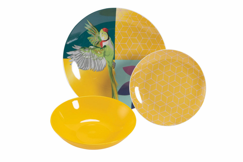 Laissez-vous capturer par des couleurs vives, qui créent des contrastes riches et intrigants qui se mélangent les uns aux autres, alternant sur des fonds unis et agrémentés de lignes qui créent des jeux magnétiques. Plantes, feuilles et oiseaux exotiques complèteront la richesse et la vivacité de tous les accessoires de la ligne Parrot Groove.