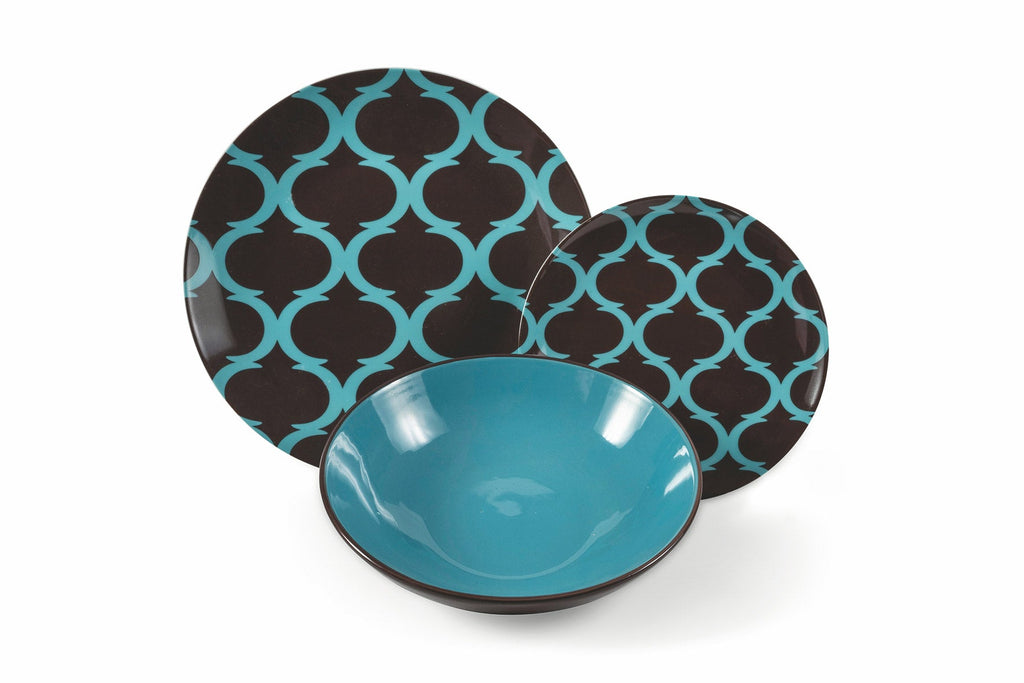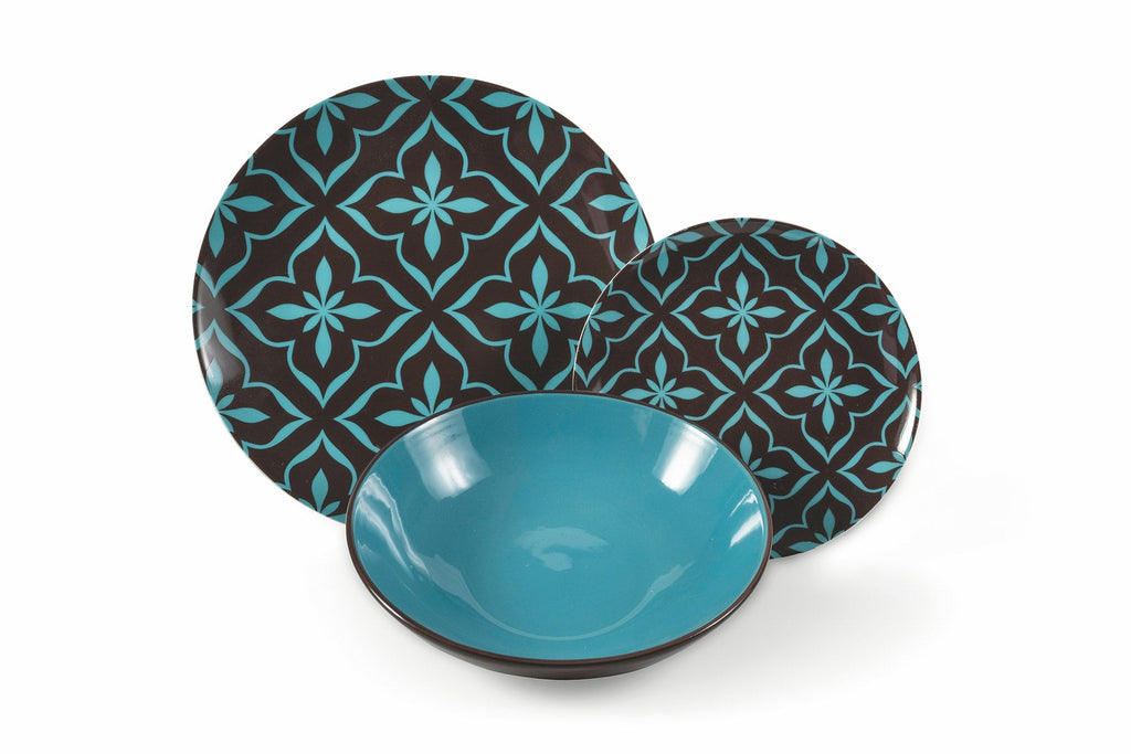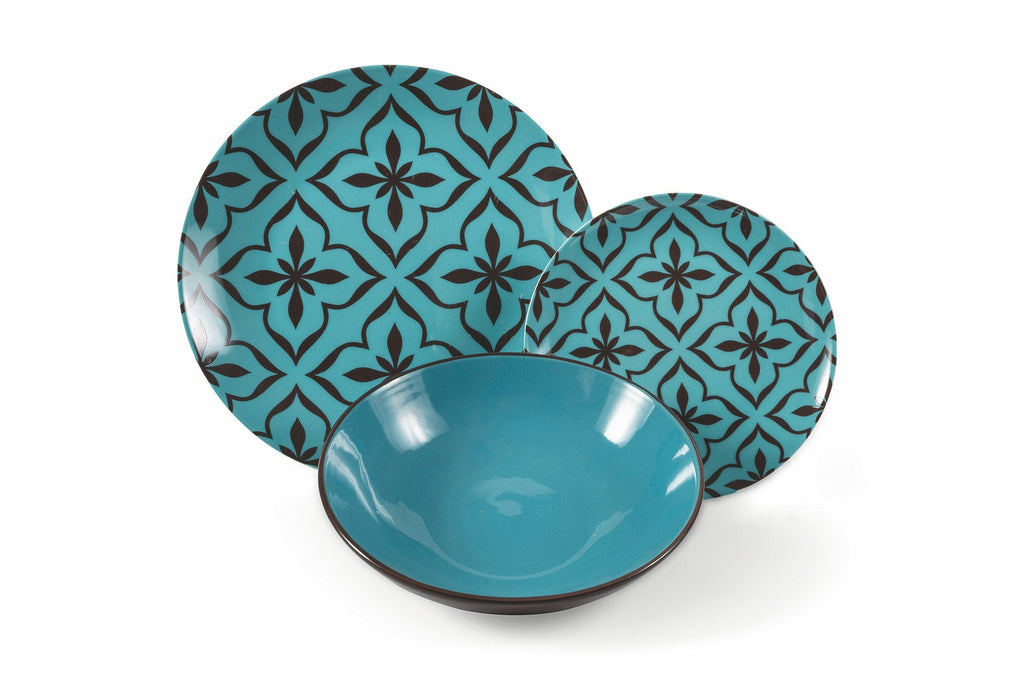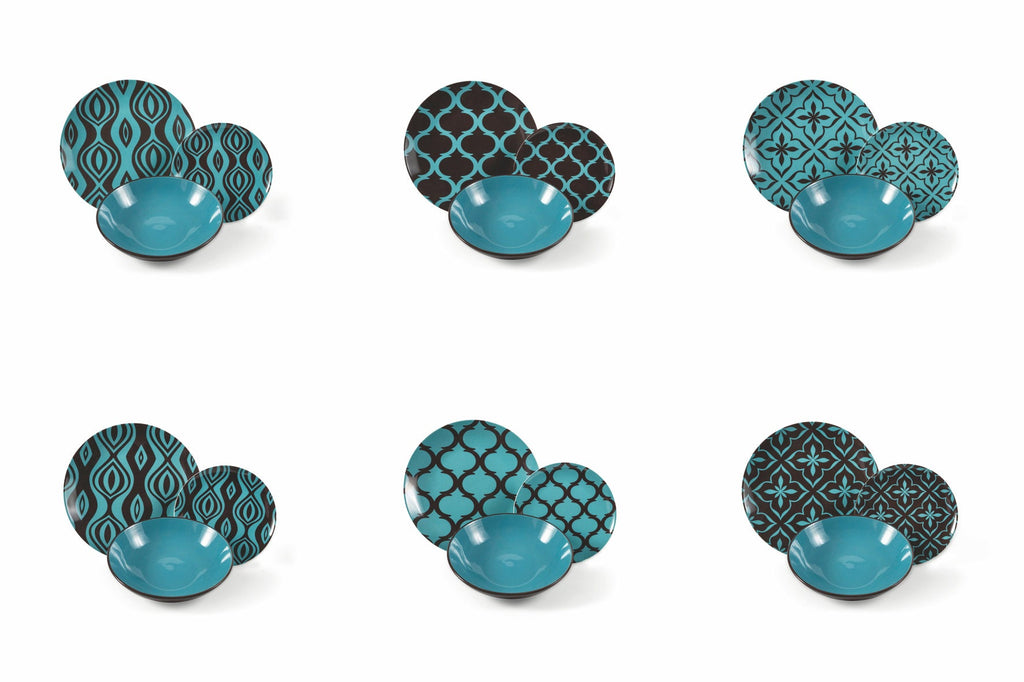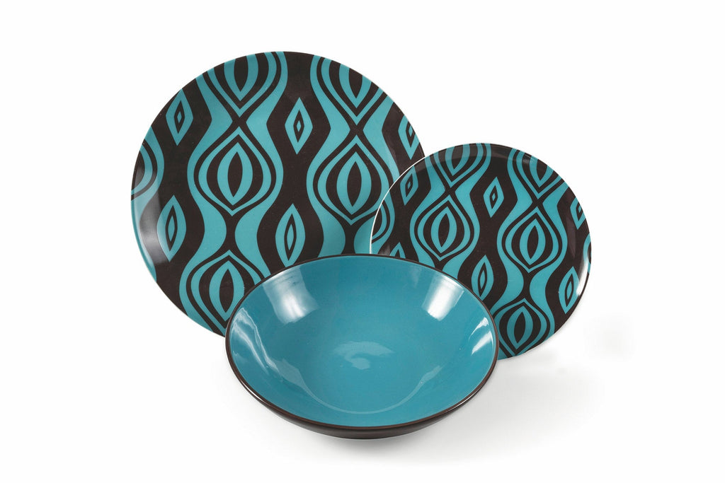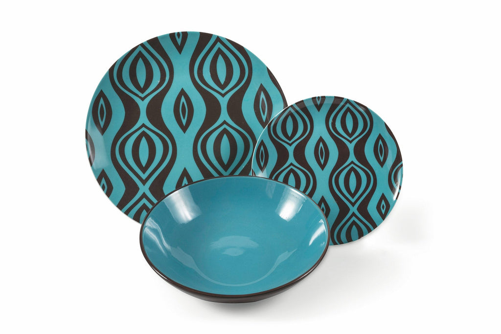 Service de Table 18 Pièces en Porcelaine et Grès VdE Tivoli 1996 Glamour Noir et Bleu Clair