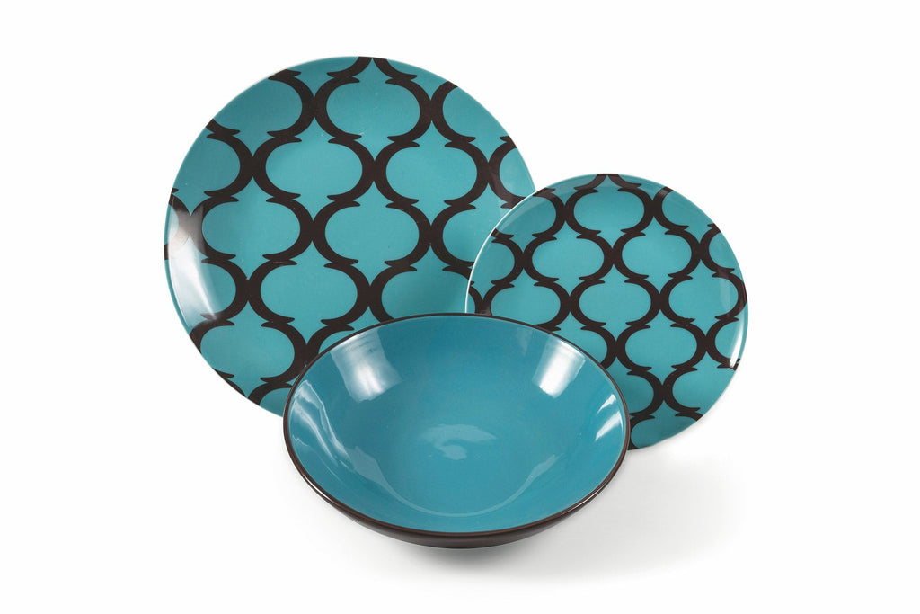 Service Plat 18 Pièces en Porcelaine et Grès Villa d'Este Home Tivoli 1996 Glamour Noir et Bleu Clair