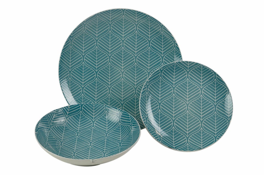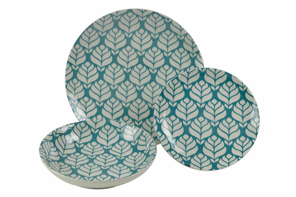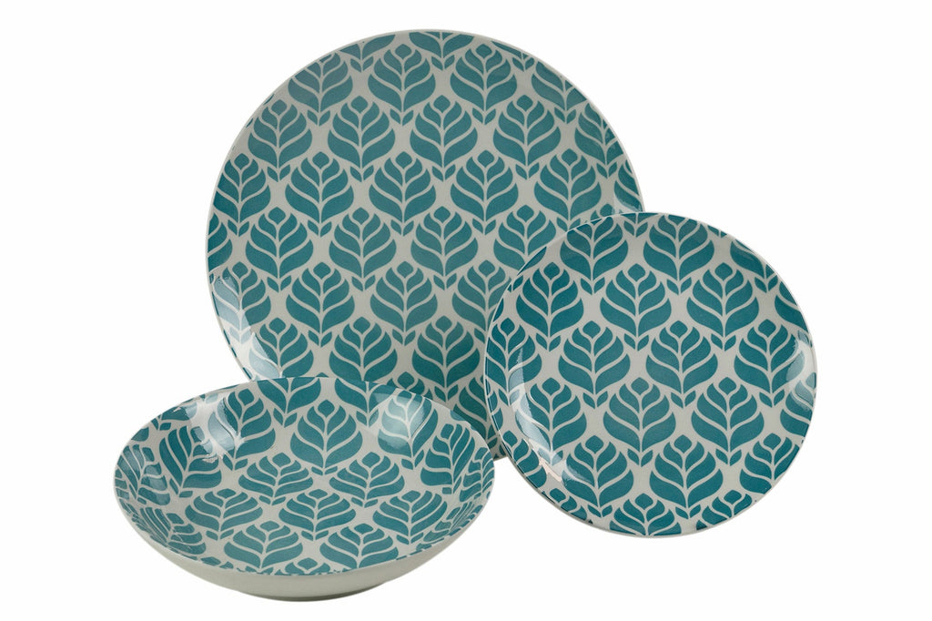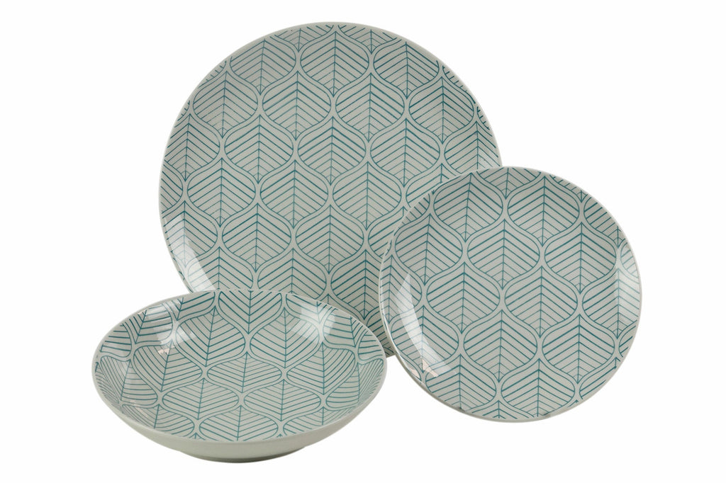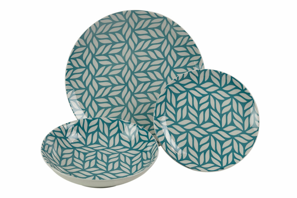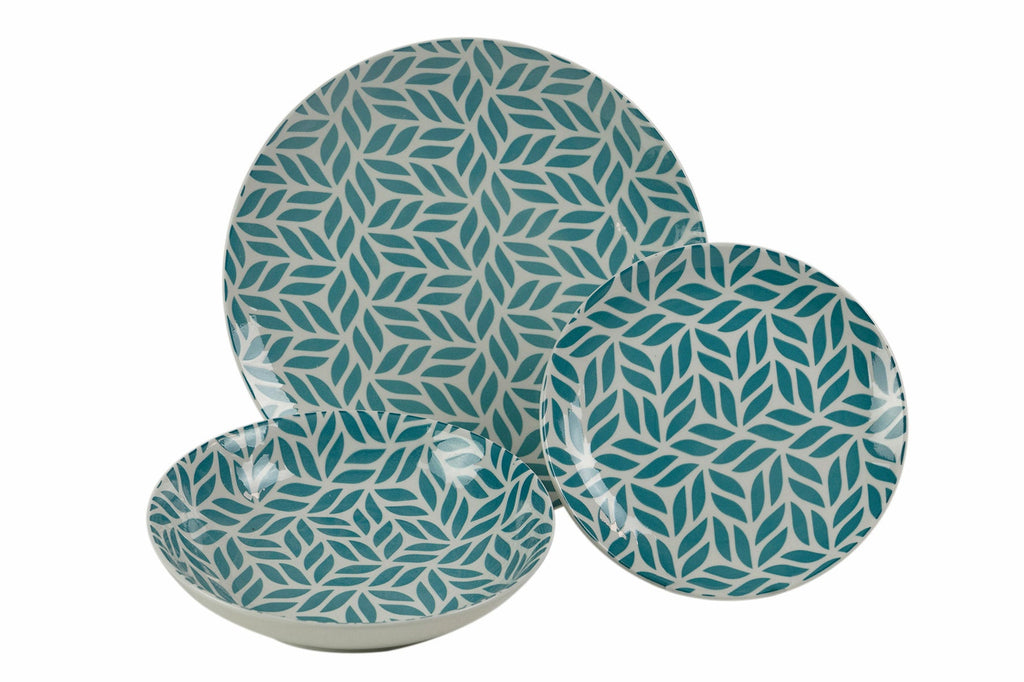 Avec des géométries élégantes, le service Bali Leaf crée des motifs d'inspiration tropicale. Les petites feuilles dansent entre le blanc et le bleu faisant de ce décor également un excellent choix pour une mise en place qui fait un clin d'œil au style côtier.