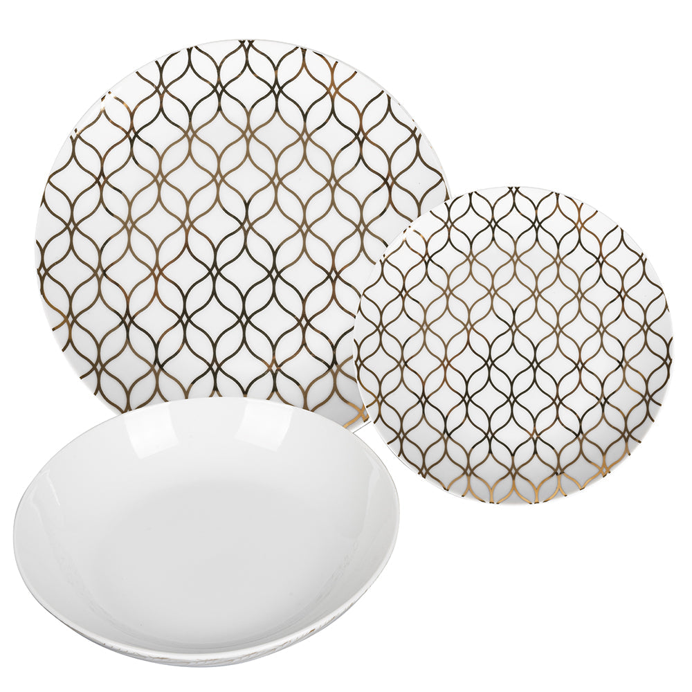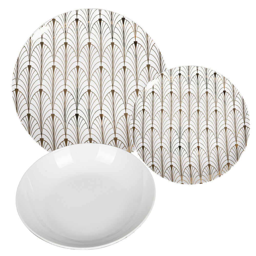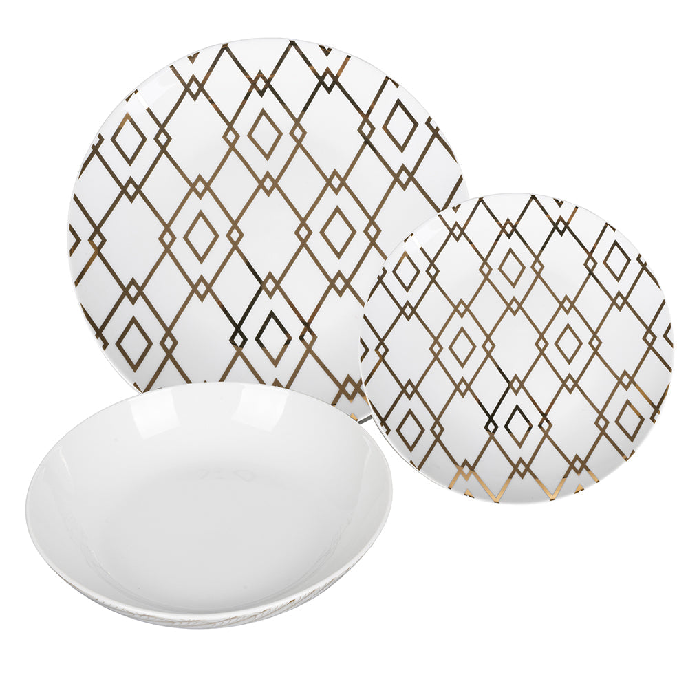 - Le service est composé de 6 assiettes plates, 6 assiettes creuses, 6 assiettes de fruits