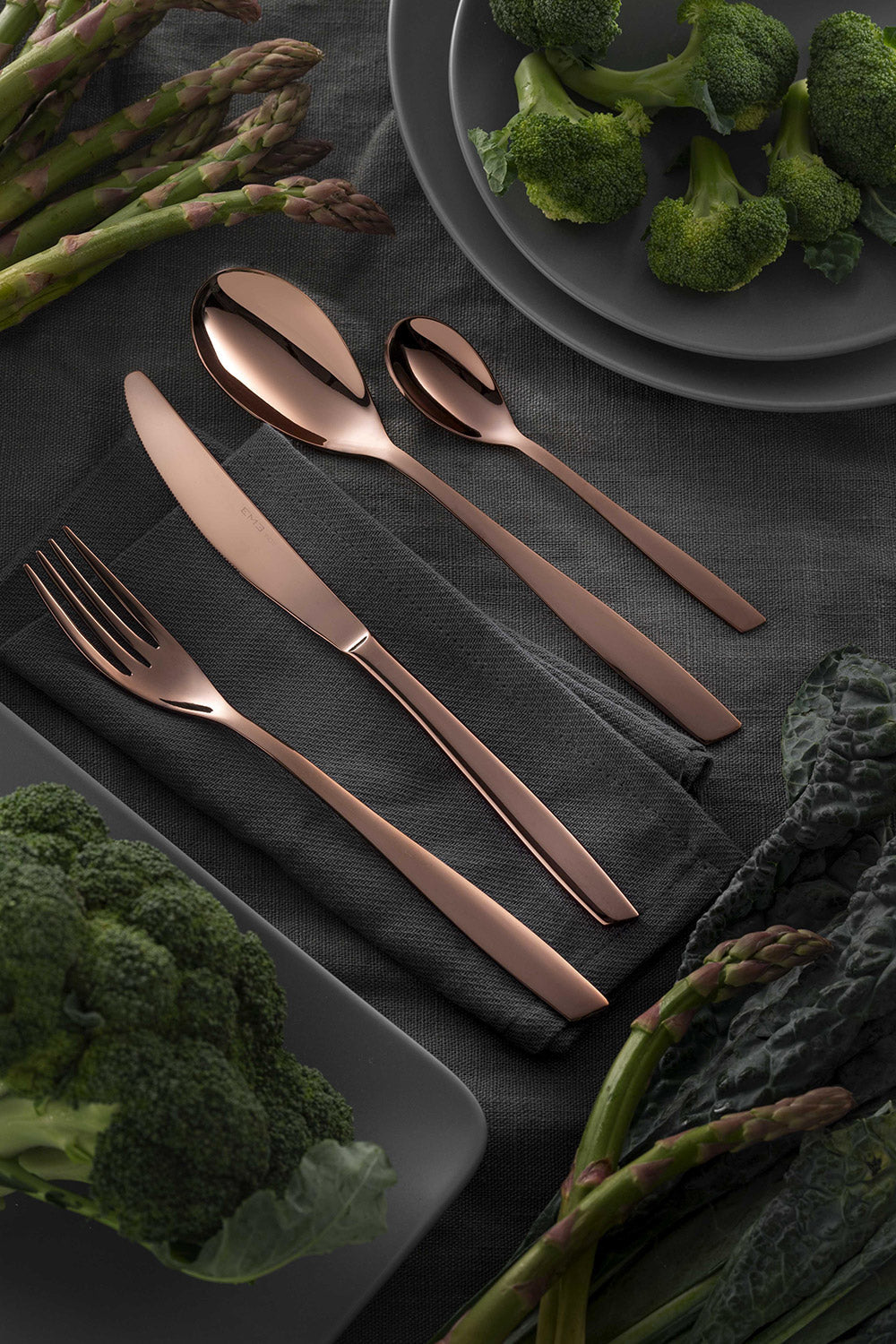 Eleven Chocolate est une collection de couverts en acier inoxydable 18/10 poli miroir avec une finition PVD couleur chocolat, une nuance très tendance.
