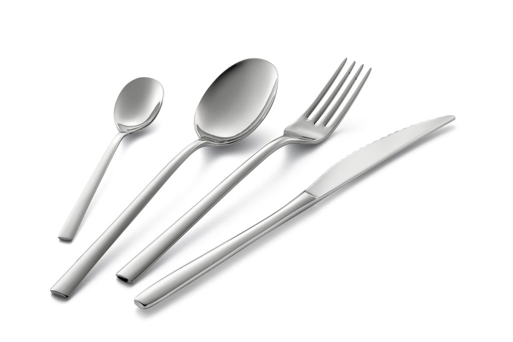 Coffret 24 pièces pour 6 personnes Mode aux lignes au design contemporain et tendance, particulièrement reconnaissable à la rondeur douce. Fabriqué en acier poli 18/10.