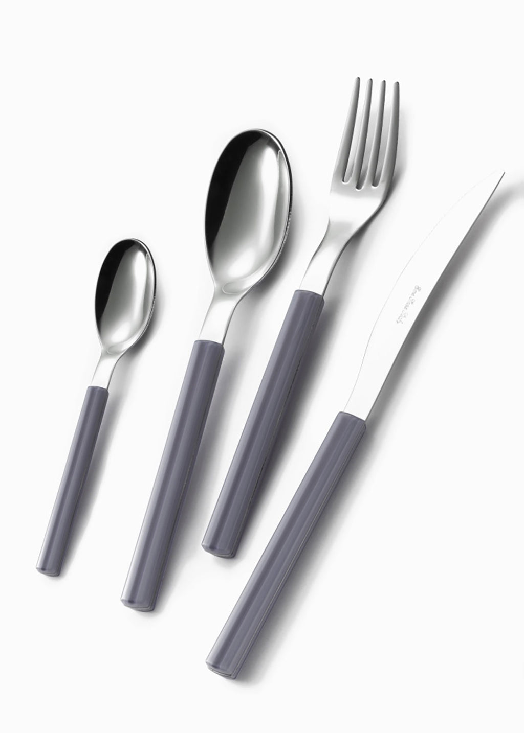 Sky è una collezione di posate disponibile in una gamma di 4 articoli e in una gamma di 10 colori. Lavabile in lavastoviglie.