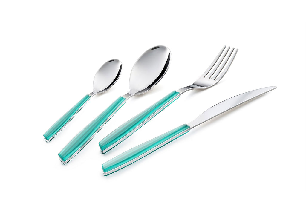 Servizio Set di Posate 24 Pezzi in Acciaio Eme Wave Turchese 311