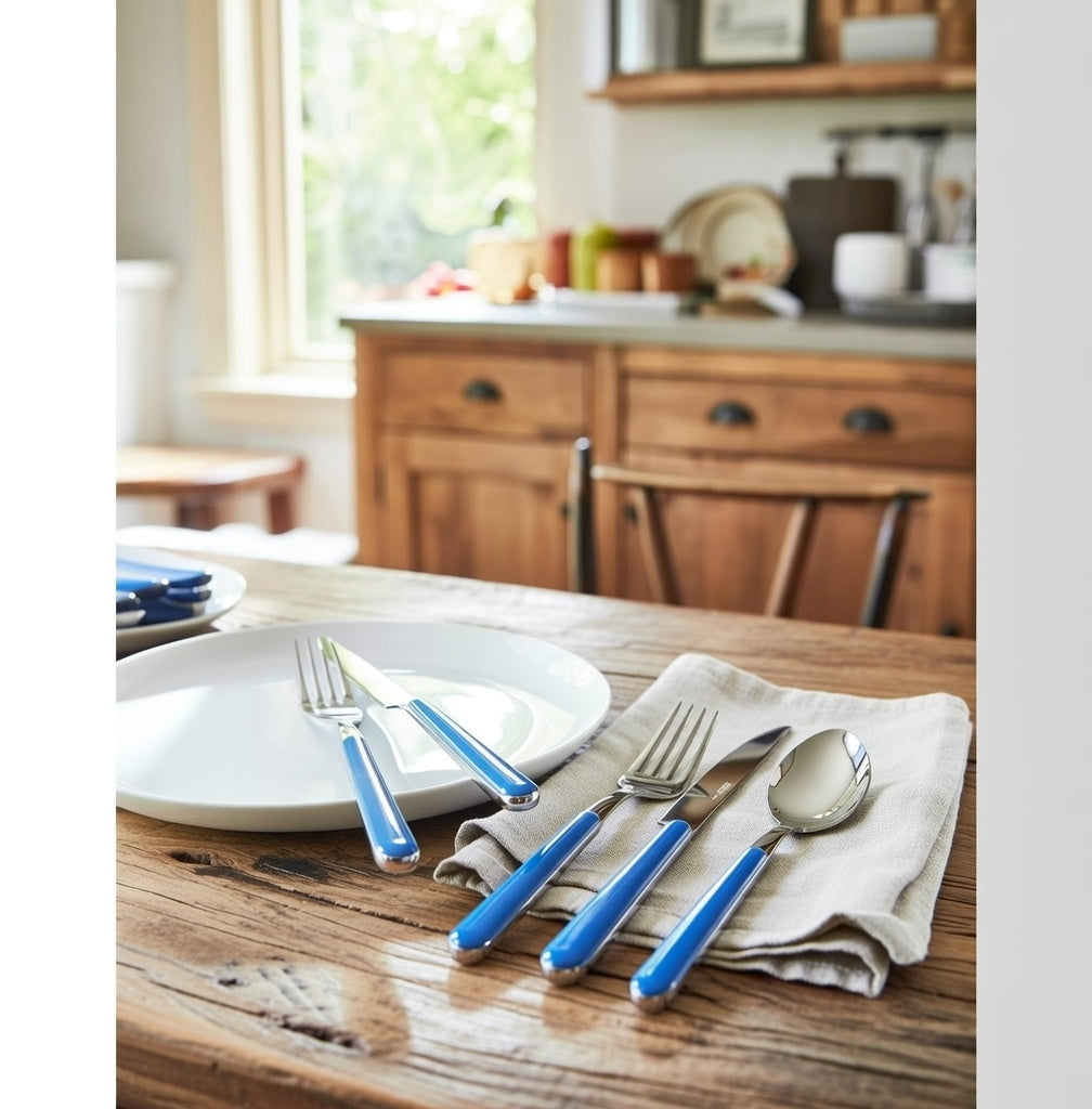 Set 24 pezzi per 6 persone. Brio modello di posate dalla tradizionale semplicità che grazie alle morbide forme e alla ricchezza di colori disponibili porta in tavola un tocco di allegria. Posata ideale per chi ricerca la gioia del colore anche nel momento dei pasti