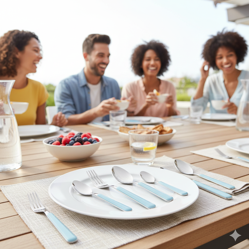 Servizio Set di Posate 24 pezzi in Acciaio Inox Eme Brio Azzurro 63