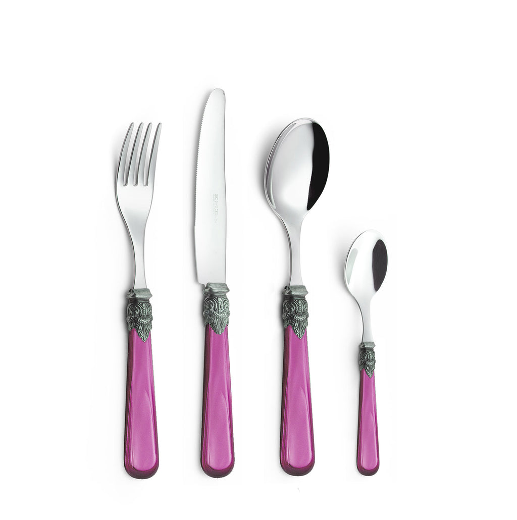 Servizio Set di Posate 24 pezzi in Acciaio Inox Eme Napoleon Perlato Fuxia 14
