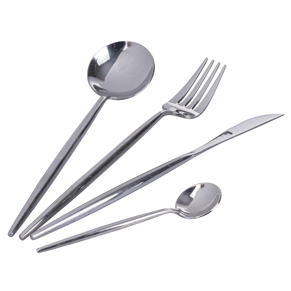 Enrichissez votre table avec charme et élégance. Abandonnez la mise en place traditionnelle, surprenez les convives avec des effets glamour et la beauté du style minimal. La ligne de couverts Preciosa, en acier, sera votre solution idéale pour un décor élégant.