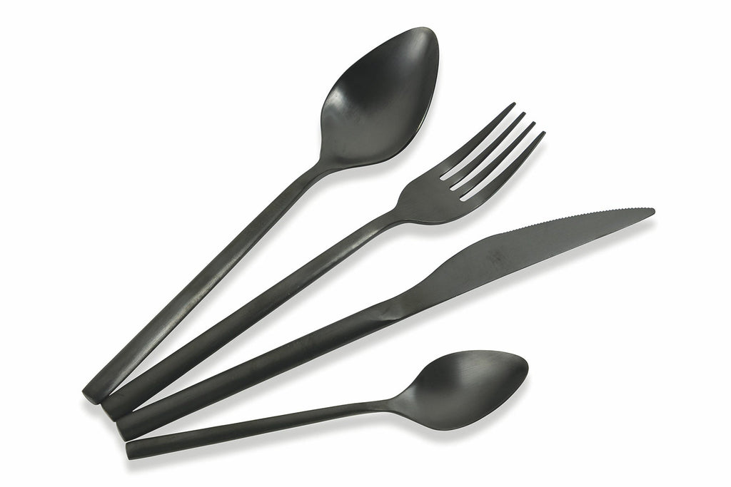 Service de couverts 24 pièces en acier noir mat Villa d'Este Maison Tivoli 1996 Fois