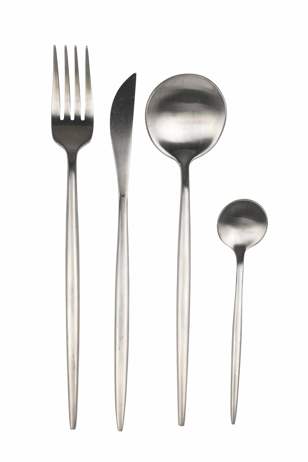 Enrichissez votre table avec charme et élégance. Abandonnez la mise en place traditionnelle, surprenez les convives avec des effets glamour et la beauté du style minimal. La ligne de couverts Preciosa, en acier satiné, sera votre solution idéale pour dresser la table avec style.