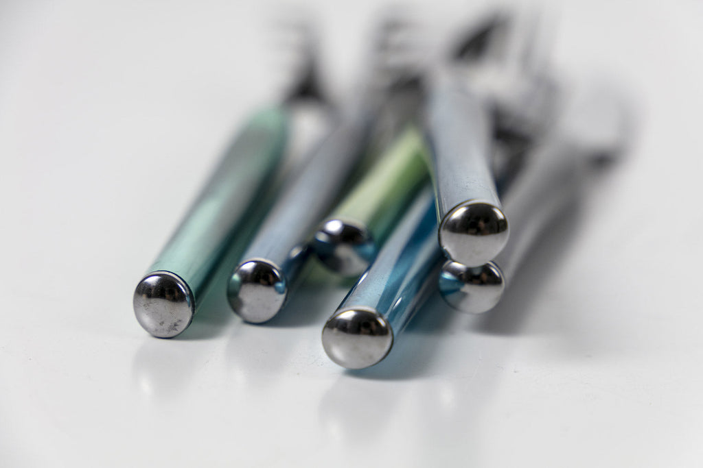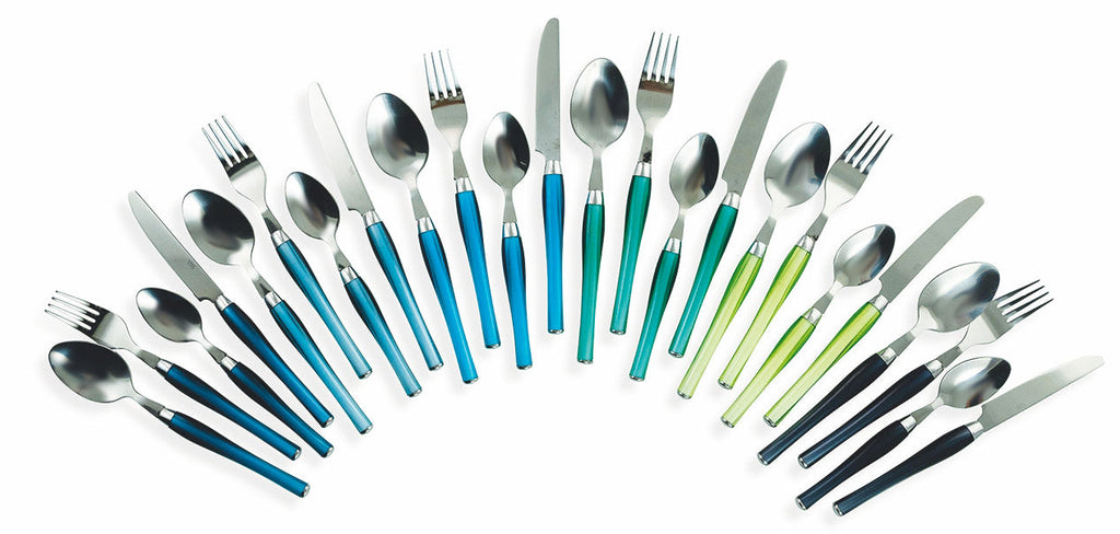 La ligne de couverts Alta Marea se distingue par ses couleurs vives et son design épuré. Sophistiqués et tendance, ils se caractérisent par une âme en acier qui les rend résistants et durables et par une finition satinée disponible en différentes couleurs. La poignée est recouverte de plastique brillant pour un effet table lumineux, innovant et léger.