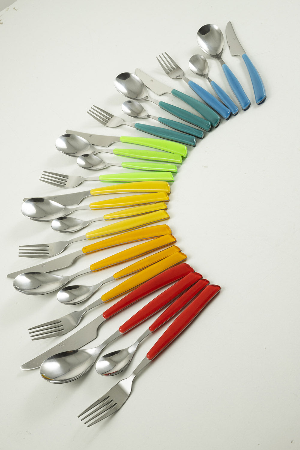 - L'ensemble se compose de 6 cuillères à café, 6 cuillères, 6 fourchettes, 6 couteaux.