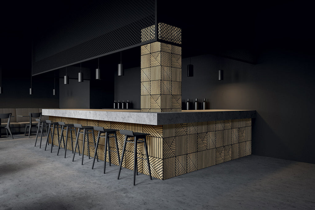 Questi pannelli Hoogapanel sono elementi decorativi prodotti infatti con legname di alta qualità idrofugo e certificato secondo gli standard internazionali FSC e CARB. Fissati alle pareti, grazie alle linee geometriche donano un tocco di design alle mura. Inoltre garantiscono un ottimo grado di isolamento acustico e termico all’interno sia di uno spazio pubblico che negli ambienti di casa. Resistente al graffio e rifinito con tinte che non si alterano con l'esposizione alla luce.