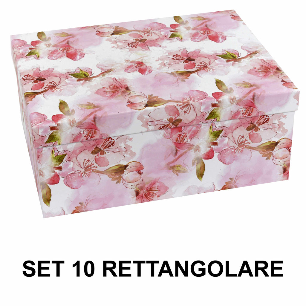 Lot de 10 Boîtes Carton Fleurs Roses Blanches Rectangulaires