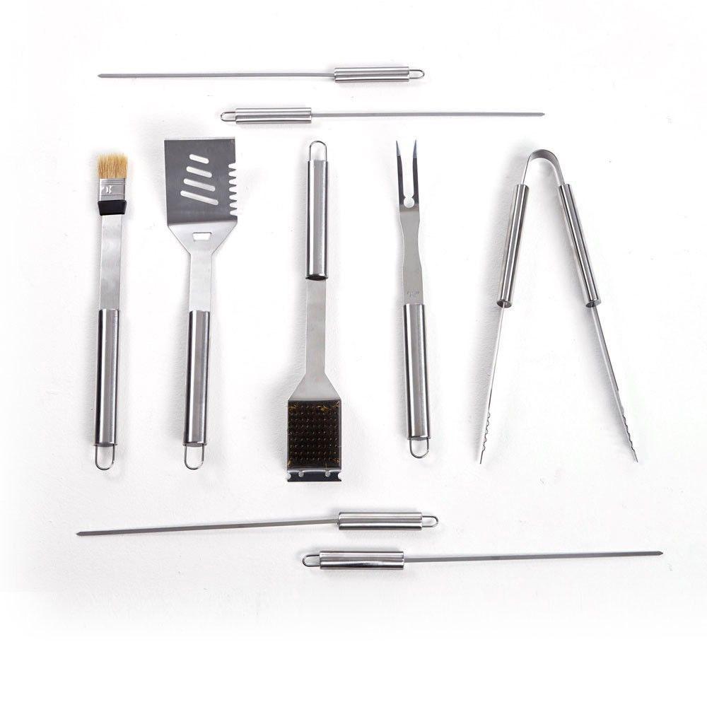 Ensemble de 11 ustensiles de barbecue en acier inoxydable avec étui