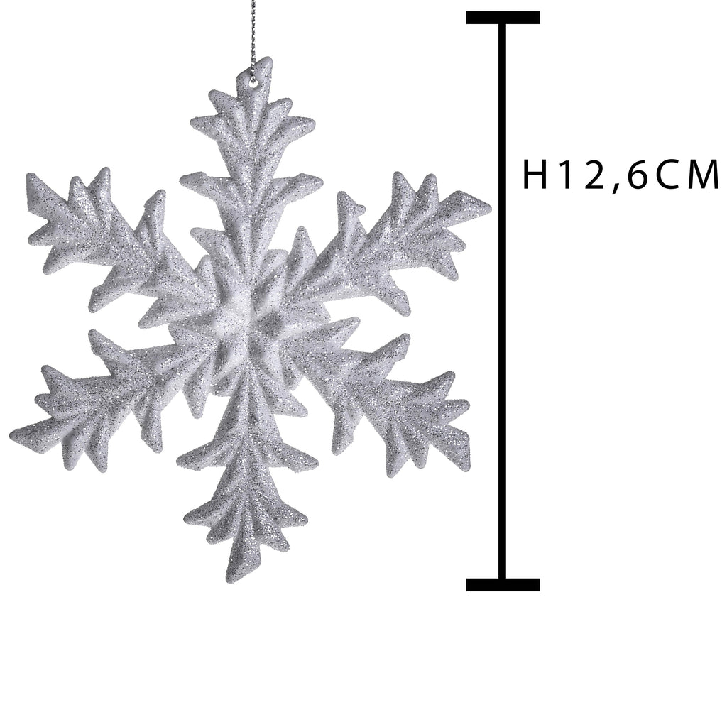 Lot de 12 Flocon de Neige à Paillettes H12,6 cm Blanc