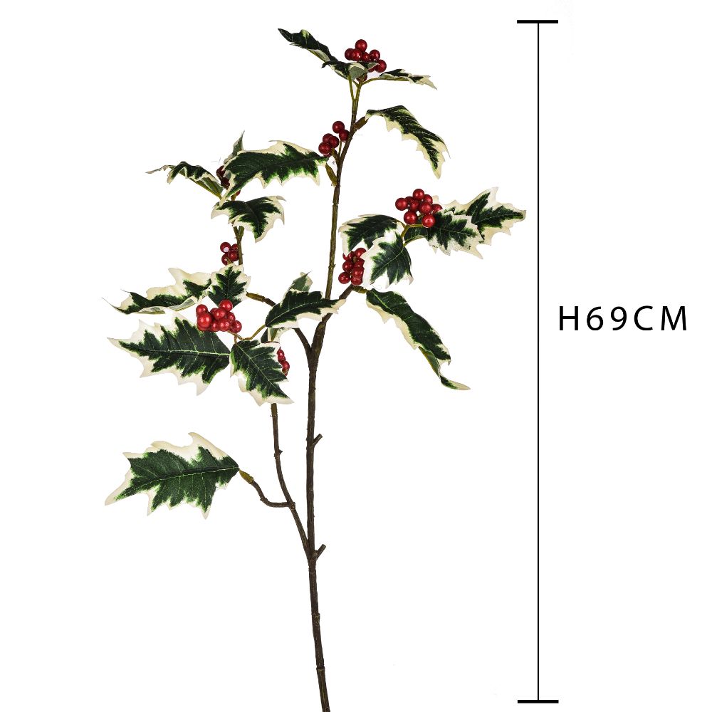 Lot de 12 Branches de Houx Artificielles 69 cm en Synthétique