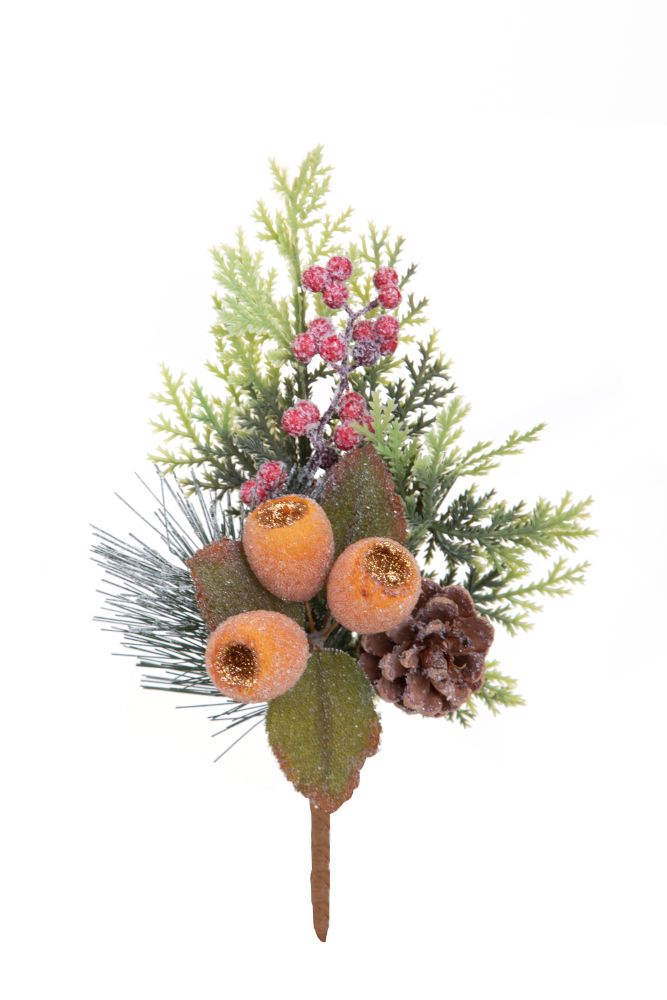 Lot de 12 Branches de Pin Artificielles avec Fruits 30 cm en Synthétique