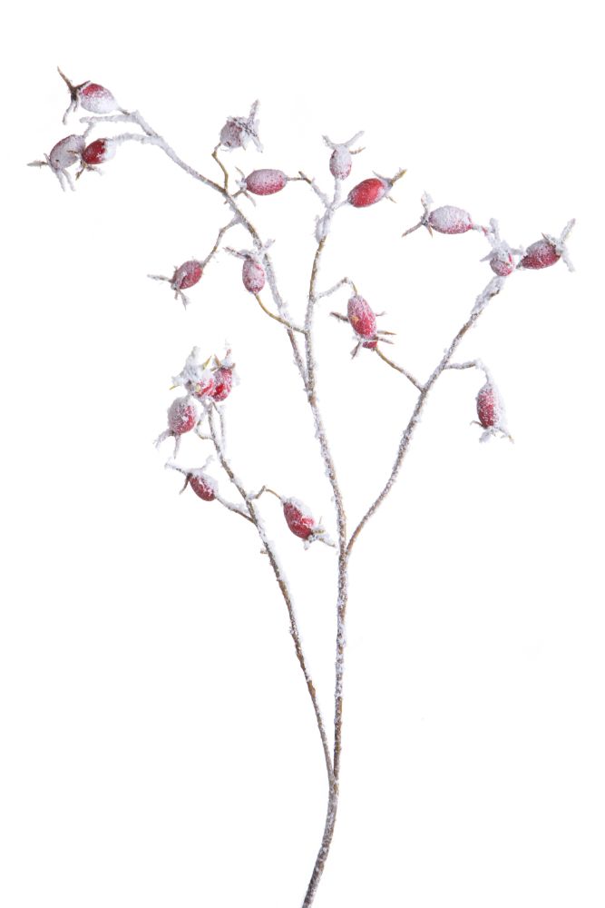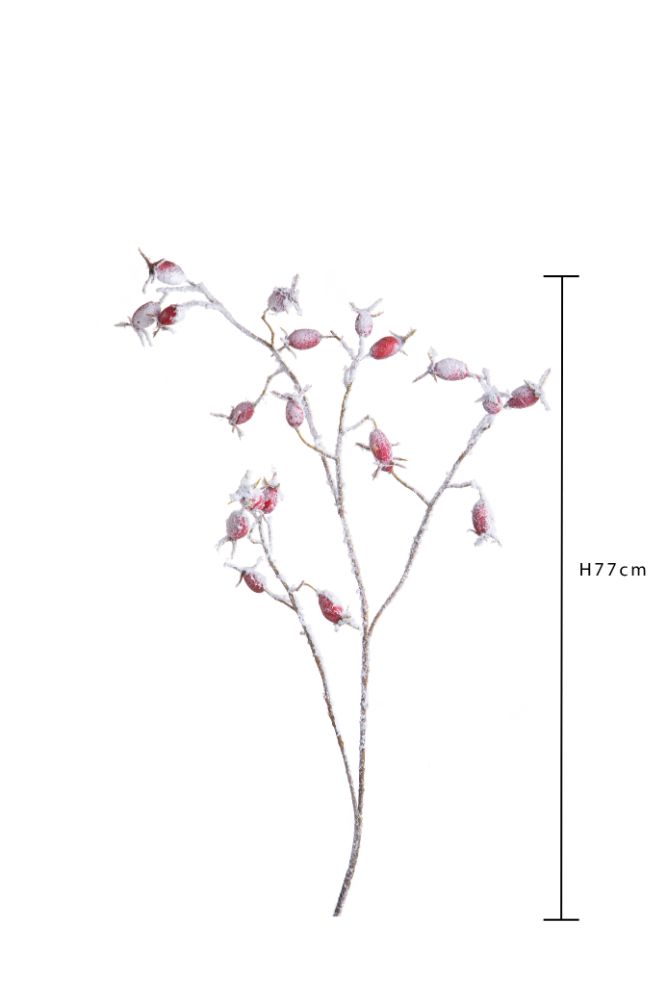 Lot de 12 branches d'églantier artificielles enneigées 77 cm en synthétique