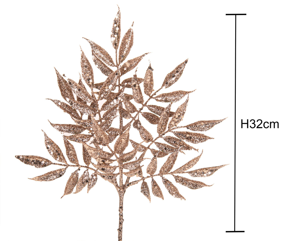 Set 12 Branches de Ruscus à Paillettes H32 cm Champagne
