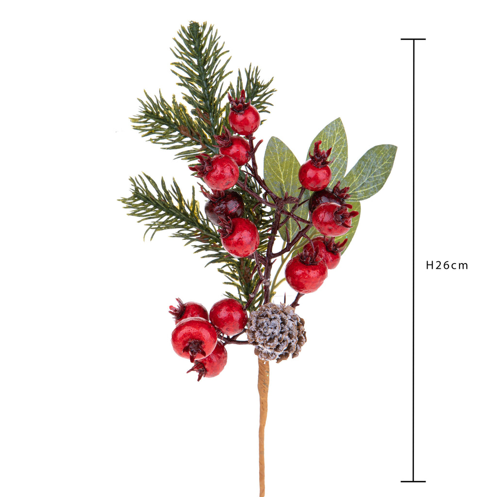 Set 12 Branches Wild Rose H26 cm Rouge/Vert