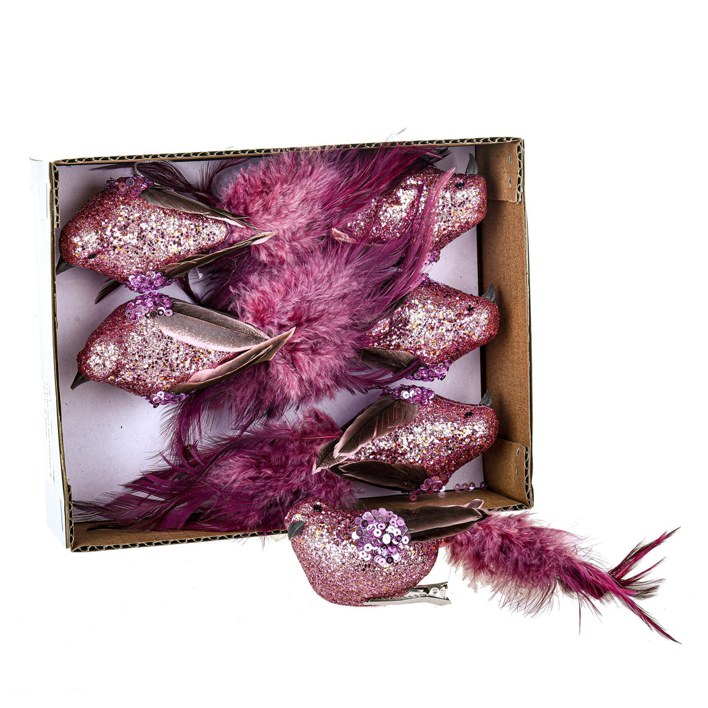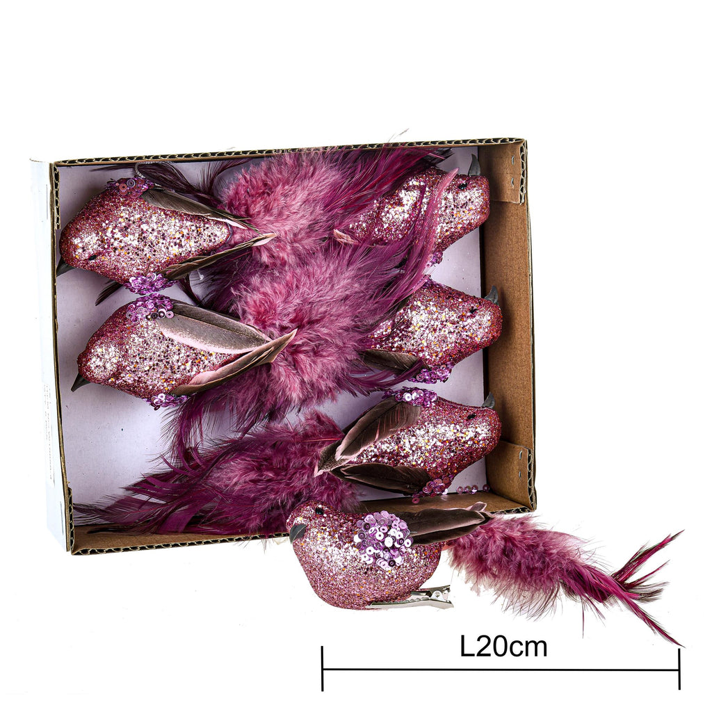 Set 12 Oiseaux avec Clip H20 cm Rose