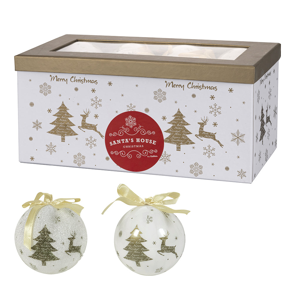 Set de 14 Boules de Noël Ø7,5 cm en Polyfoam avec Boîte Renne et Sapin Doré