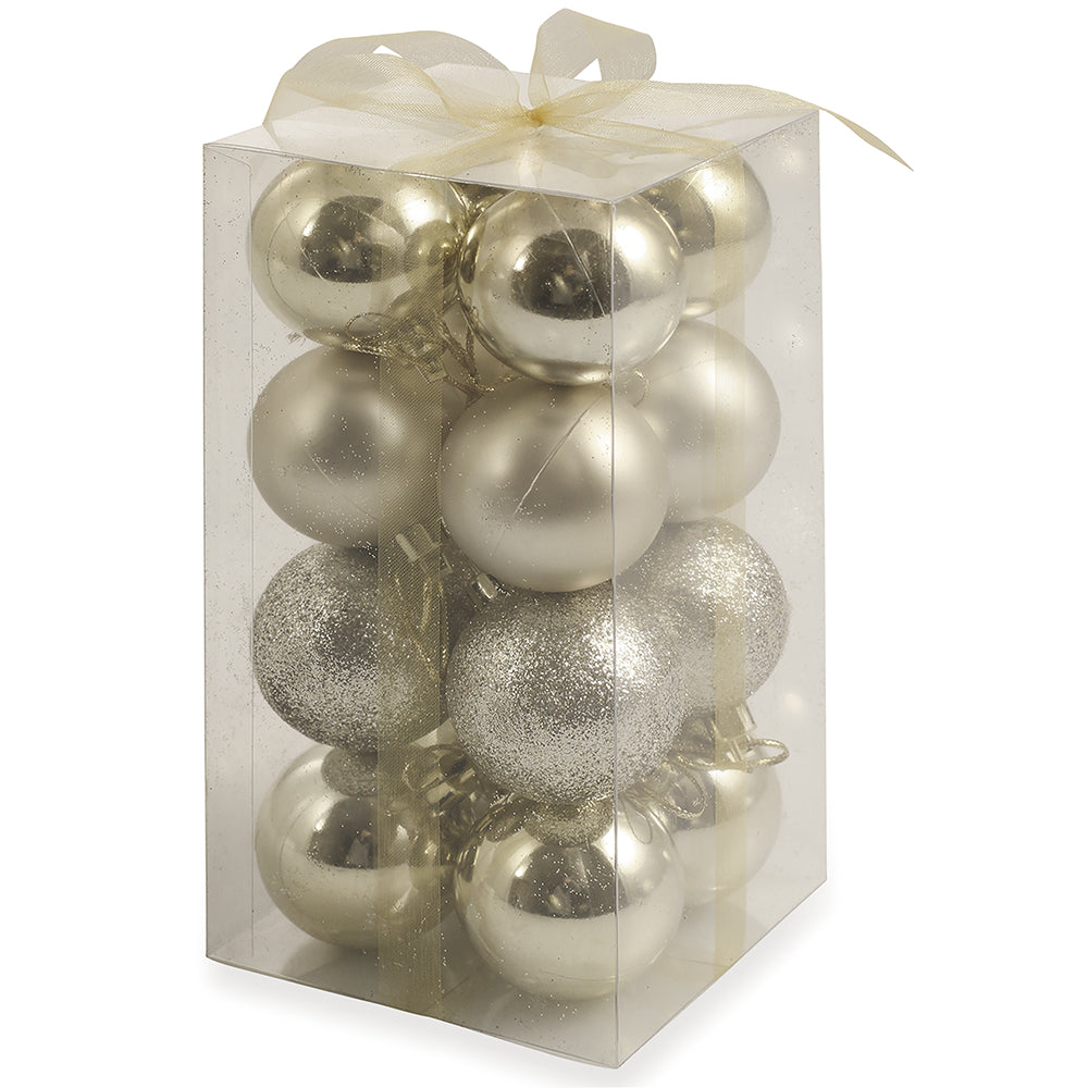 Lot de 16 Boules de Noël Ø3 cm en Plastique Champagne