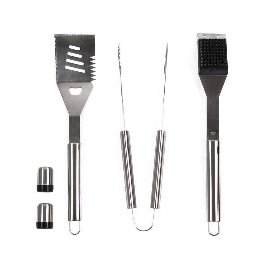 - Dotazione: Spatola, Pinze, Spazzola per pulizia barbecue, 2 Saliere, Coltello, 4 Spiedini, Forca, 6 Supporti per mais e Pennello in silicone