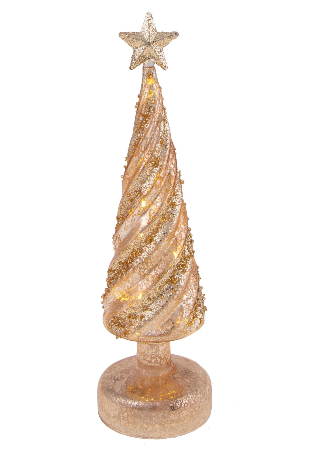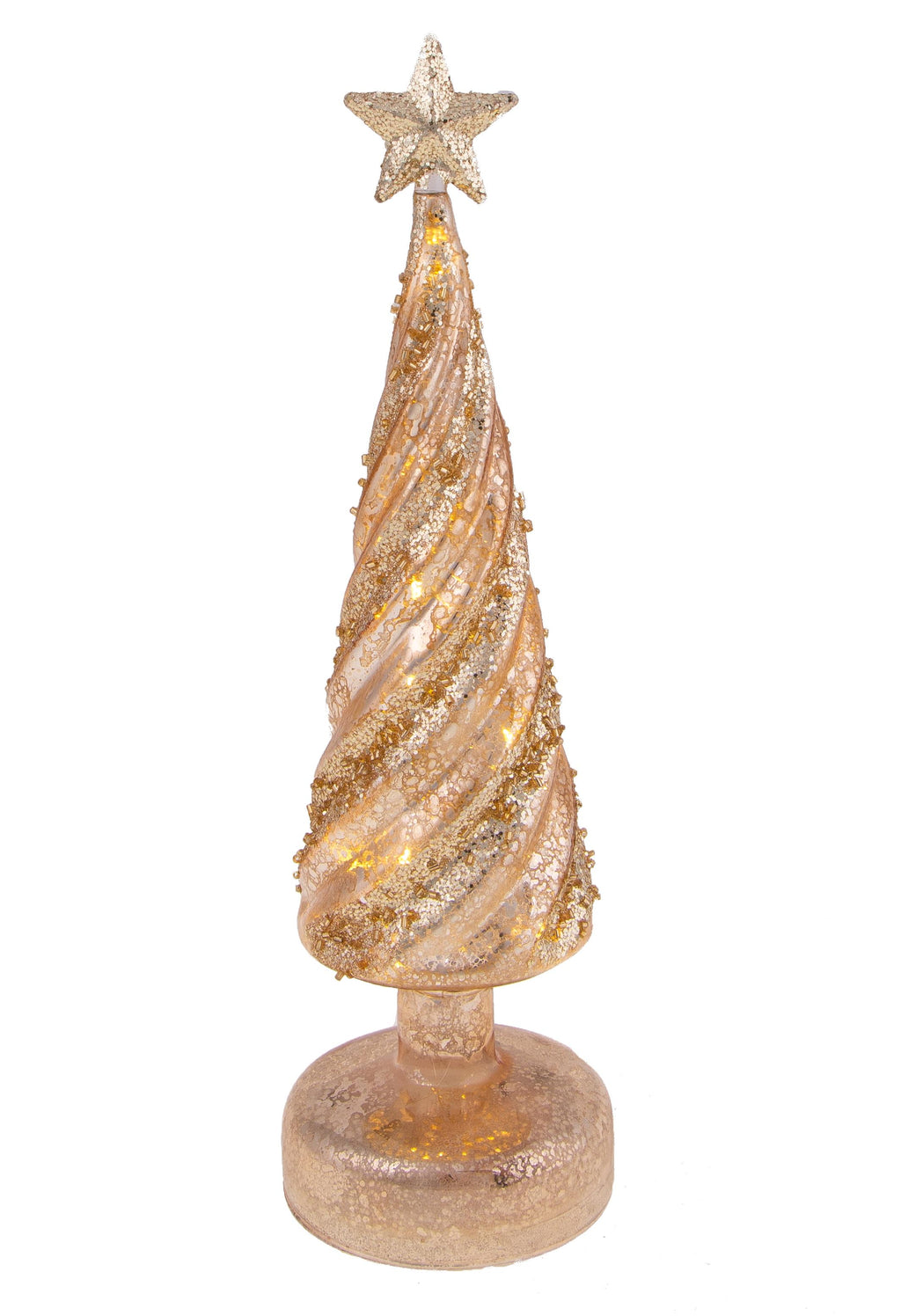 Lot de 2 Arbres Coniques Décoratifs à Led H30 cm en Verre et Plastique Doré