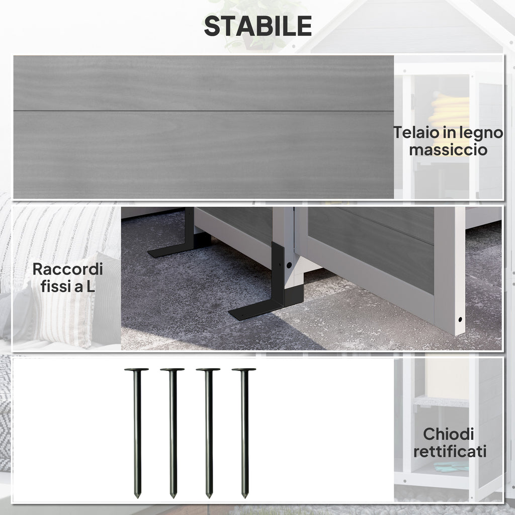 - STRUTTURA IN LEGNO: Realizzato in robusto legno di abete, questo capanno da giardino è rinforzato con connettori a L, dotato di picchetti da terra e piedi rialzati per garantire una maggiore stabilità e impedire infiltrazioni di umidità