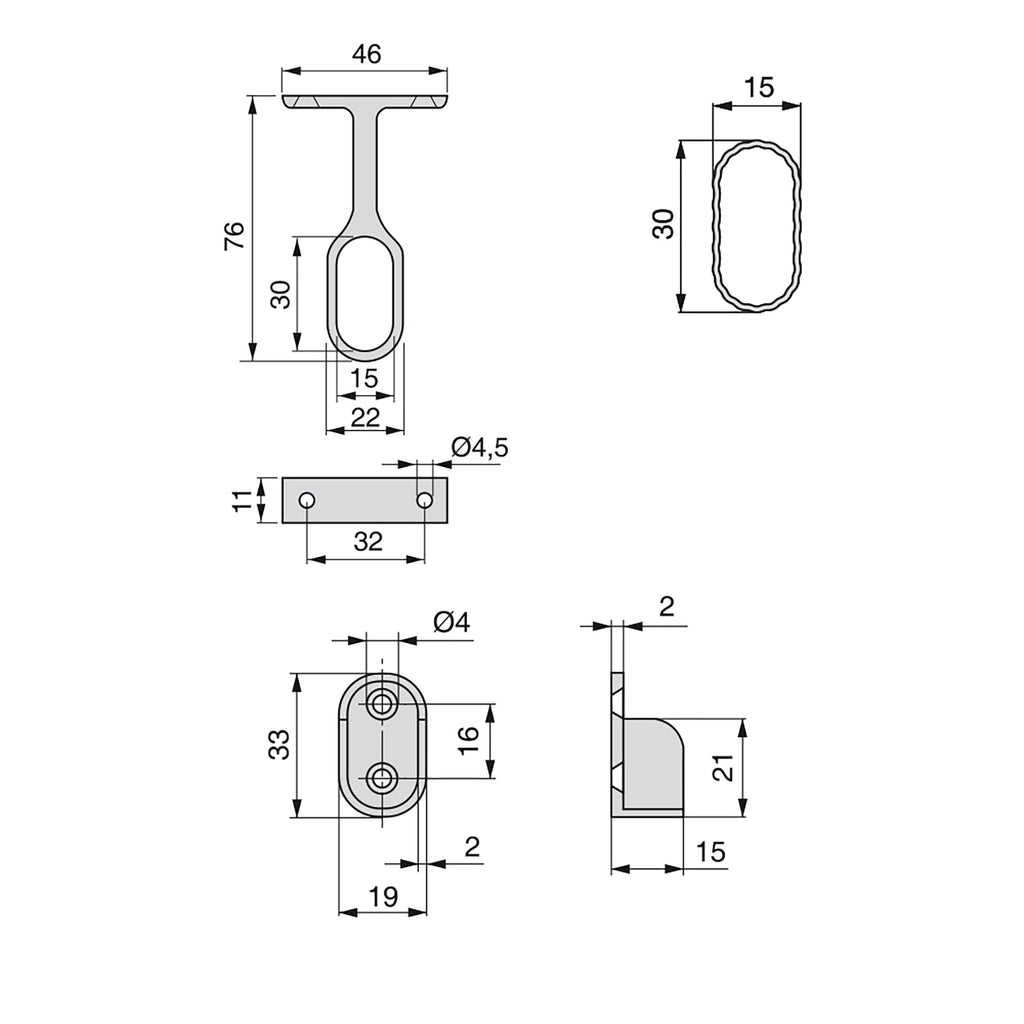 - Chaque kit comprend deux tubes d'armoire de 30 x 15 mm et des supports de tubes latéraux pour l'installation.