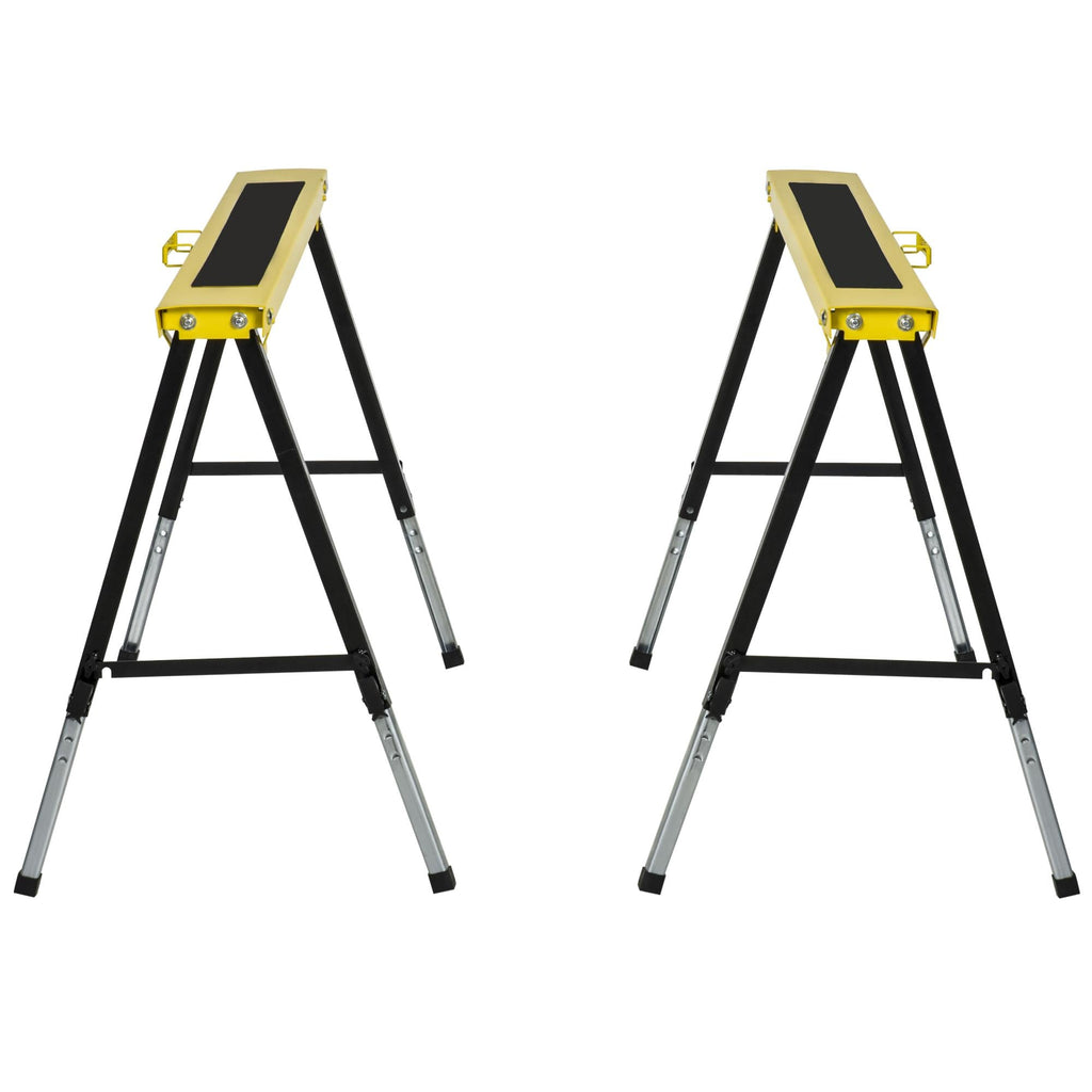 Lot de 2 Escaliers Pliants Télescopiques Hauteur Réglable en Métal Jaune et Noir