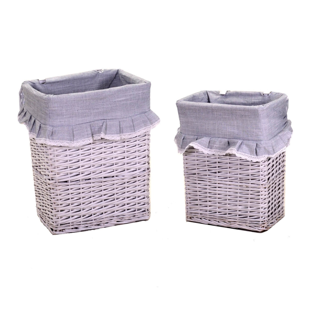 Lot de 2 paniers en osier 45x34H56cm avec dentelle blanche et volants