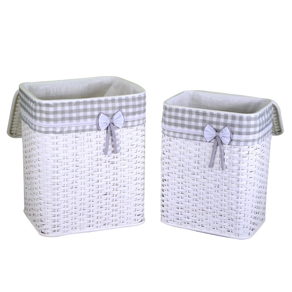 Lot de 2 paniers à linge rectangulaires en rotin blanc