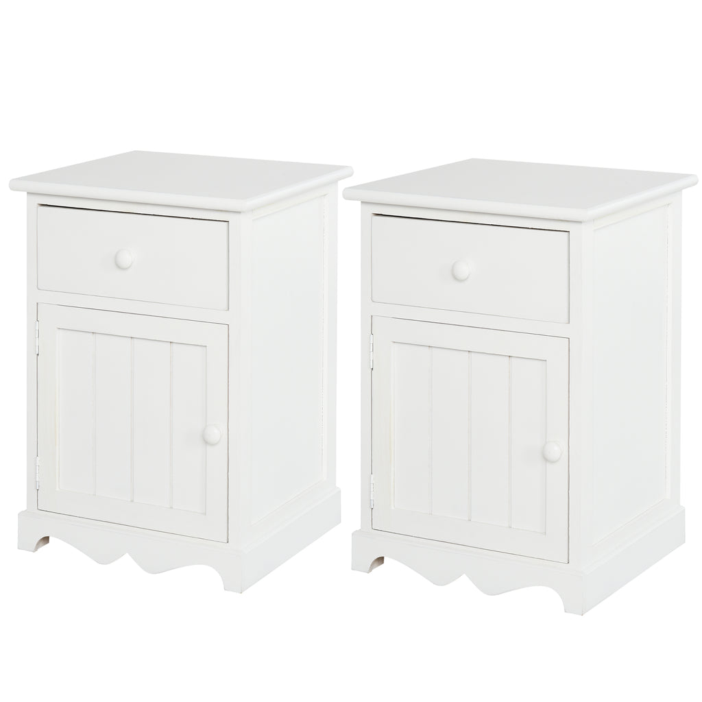 Set de 2 chevets 1 tiroir 1 porte en bois blanc