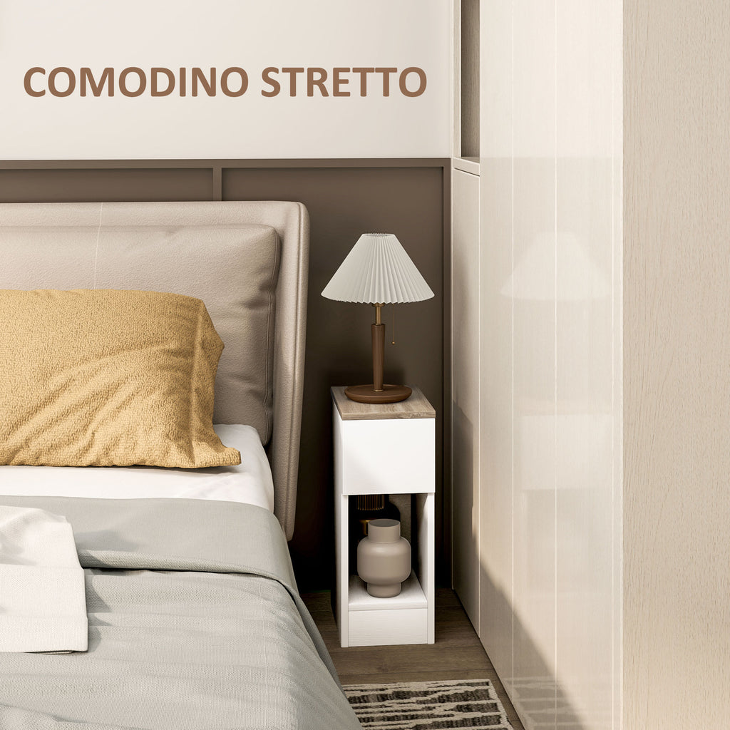 Set 2 Comodini Moderni con Cassetto e Ripiano in Legno 20x30x50 cm Bianco e Rovere