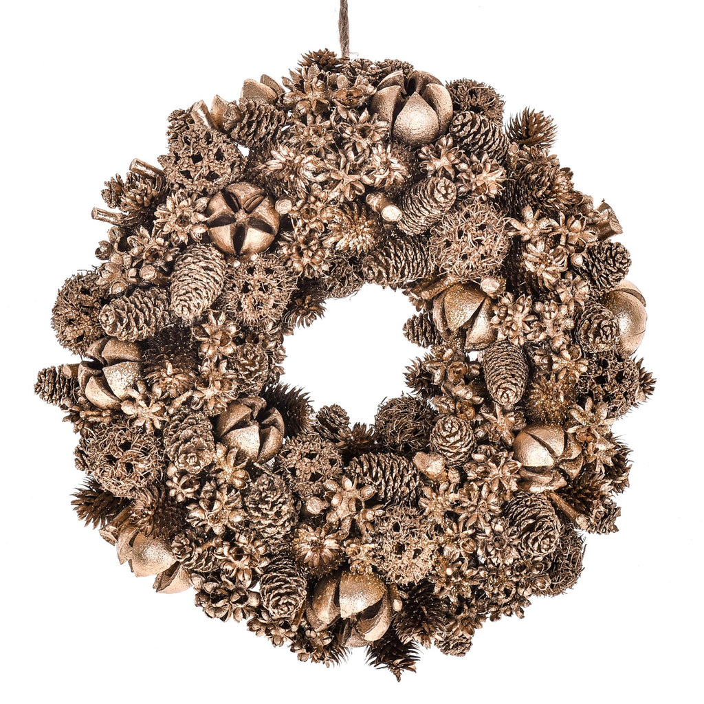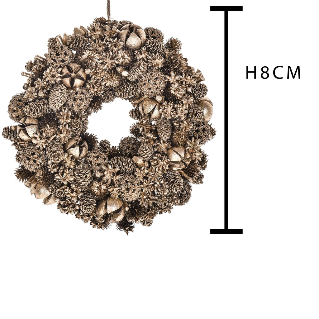 Set 2 Couronnes de Noël avec Pommes de Pin et Baies Ø25 cm Doré