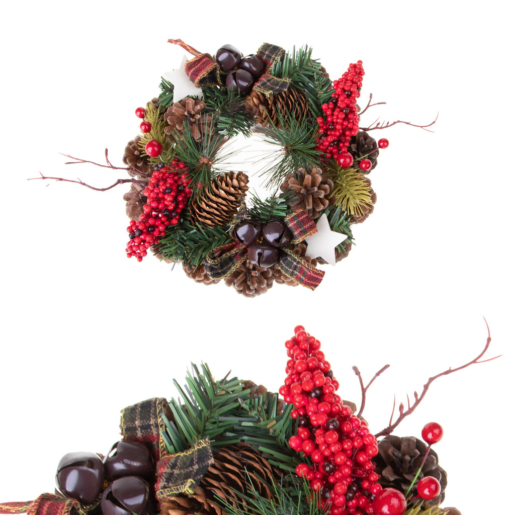Set 2 Couronnes de Noël avec Pommes de Pin et Noeuds Ø22 cm Rouge