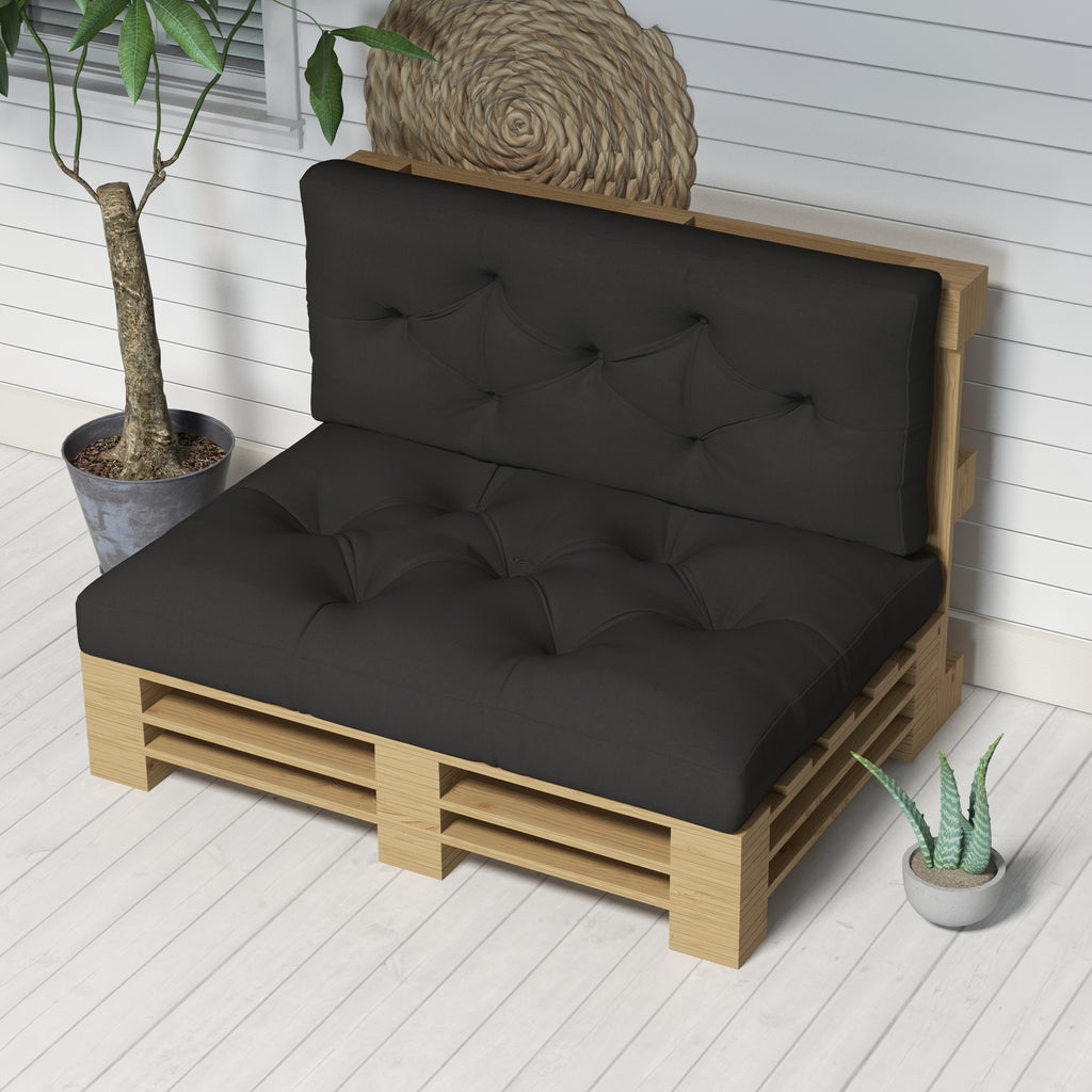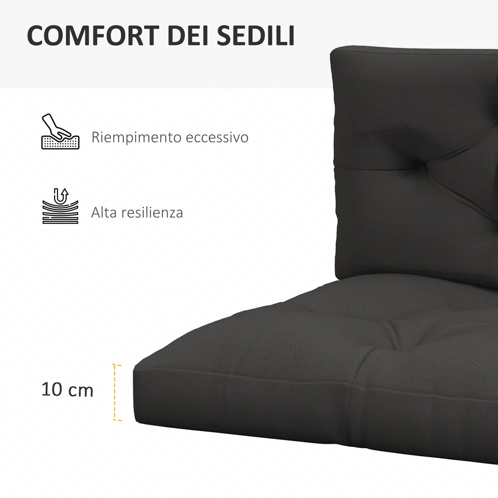 Set 2 Cuscini da Giardino per Divani e Pallet in Poliestere con Imbottitura Spessa Grigio