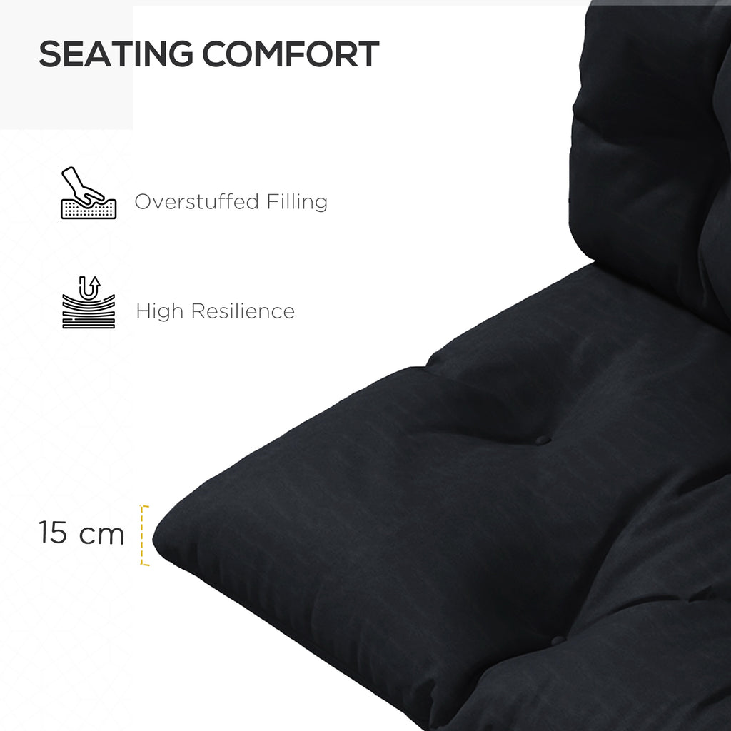 Set 2 Cuscini da Giardino per Divani e Pallet in Poliestere con Imbottitura Spessa Nero