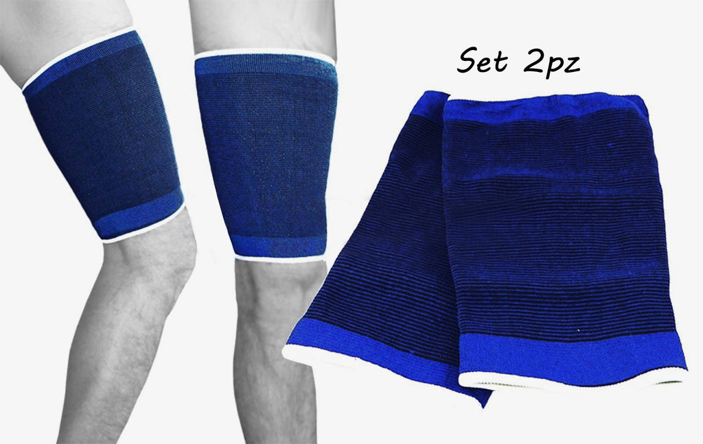 Paire de bandes élastiques pour cuisse. Son action élastique a un massage relaxant et une action de soutien pour la circulation, adaptée à ceux qui effectuent des travaux lourds et doivent rester debout pendant de nombreuses heures. Indispensable pour tout type de sport. Ils sont fabriqués en matériau lavable. Cette bande assure un soutien efficace des ligaments et muscles endommagés et des articulations faibles ou instables.