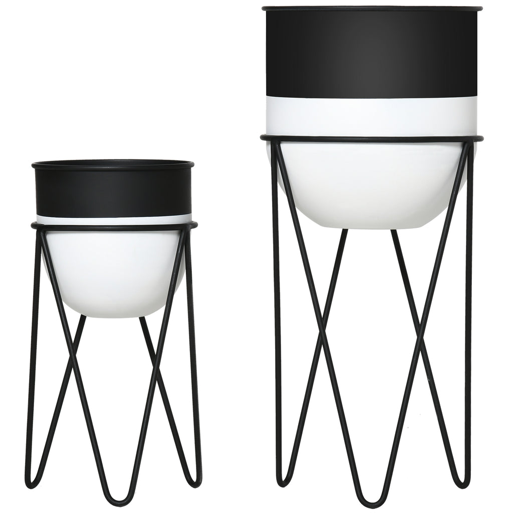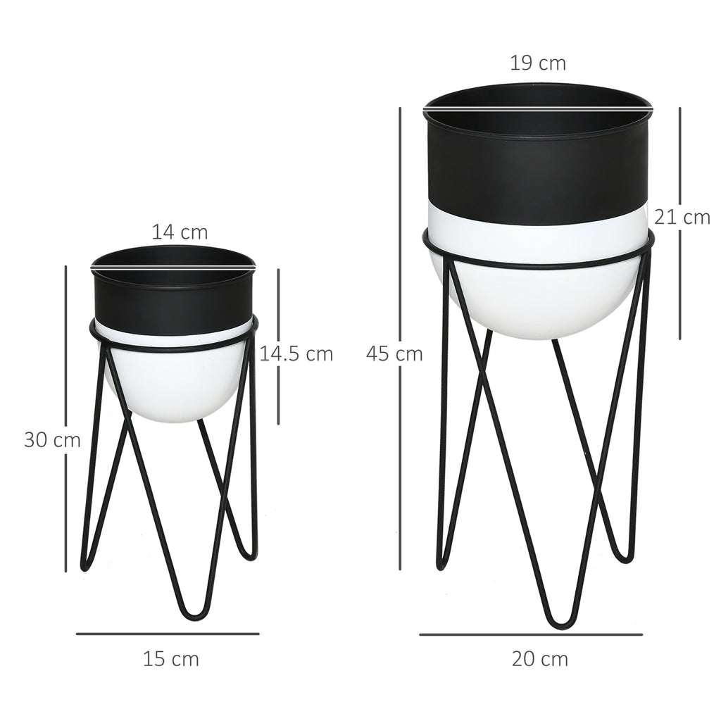 Lot de 2 jardinières avec support en métal pour intérieur et extérieur Noir