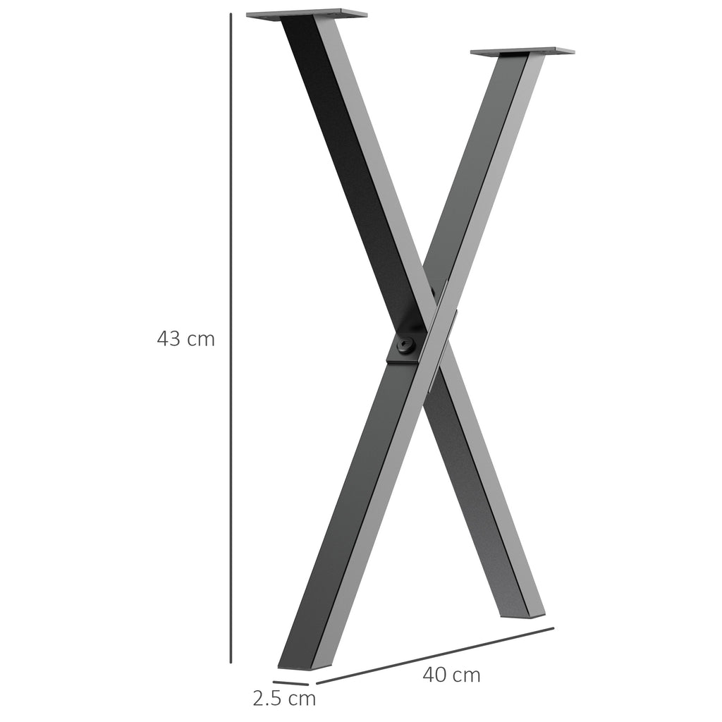 Lot de 2 Pieds de Table en X 40x2,5x43 cm en Acier Noir
