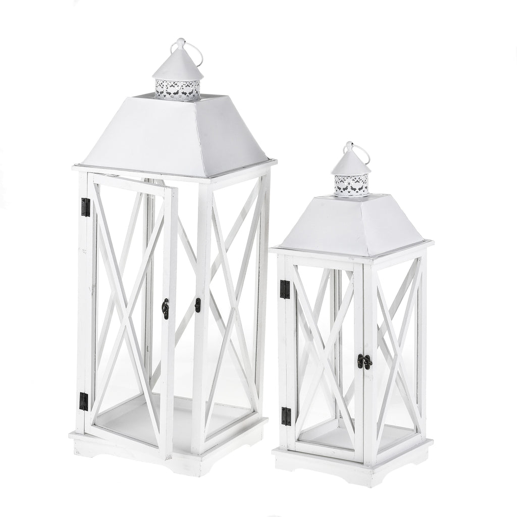 Ensemble de 2 lanternes en bois. Hauteur 80 cm