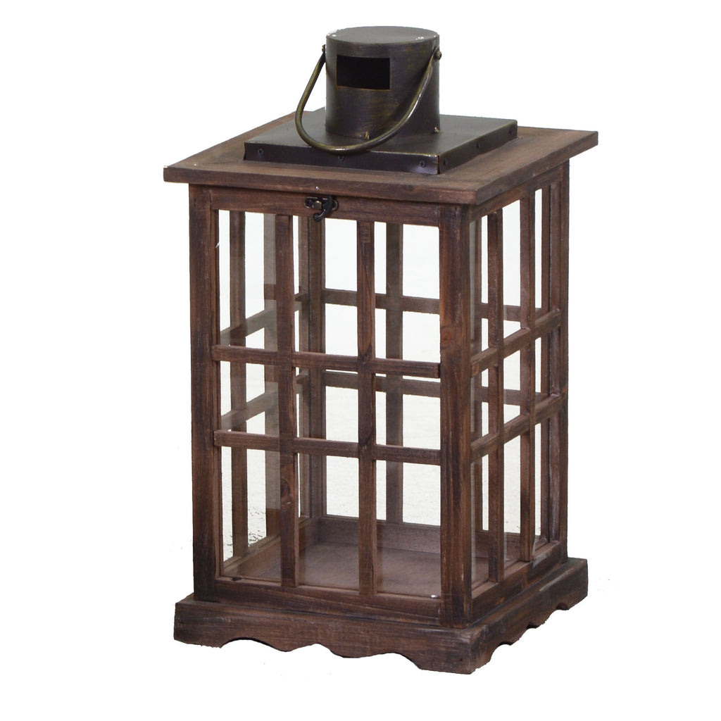 - Lanterne rectangulaire en bois marron 2^ Dimensions : 25x25xh60 cm