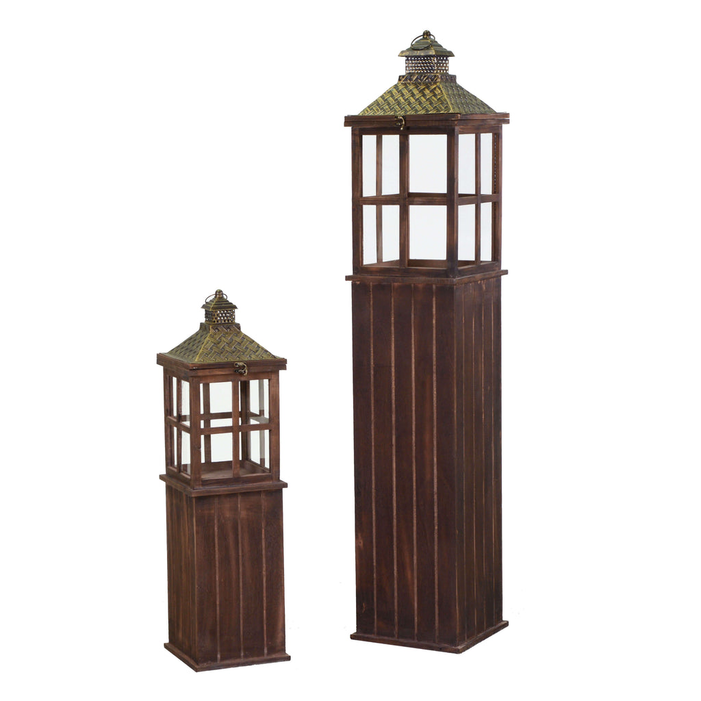 Set 2 Lanterne rectangulaire en bois marron foncé