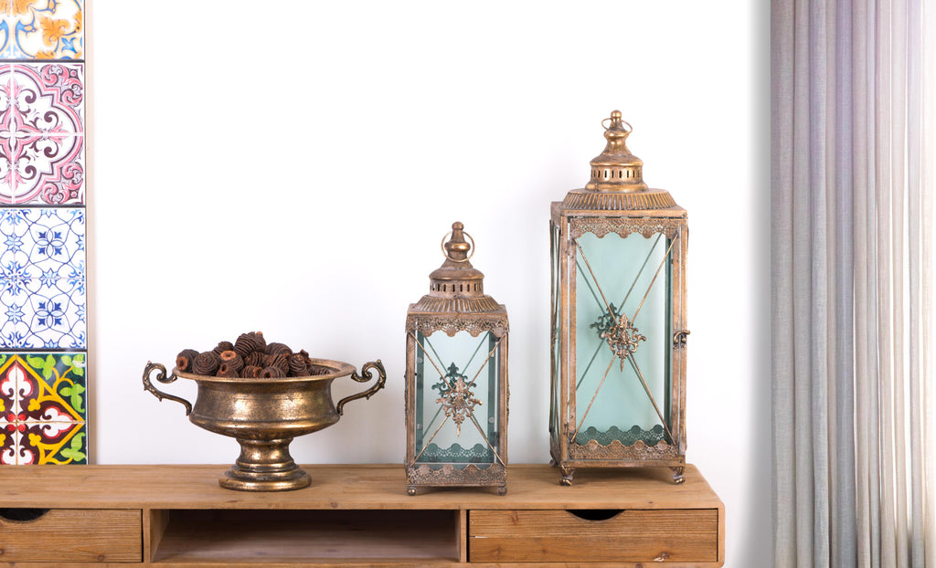 Ensemble de 2 lanternes en métal. Hauteur 63 cm