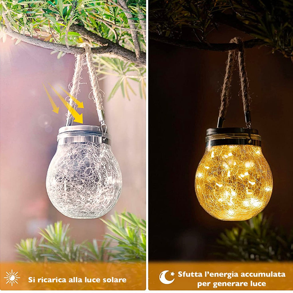 Les LED chaudes à l'intérieur rendront l'atmosphère vraiment romantique, cette lampe est parfaite à la fois pour accrocher et pour se poser sur le bord d'une fenêtre ou au centre d'une table.